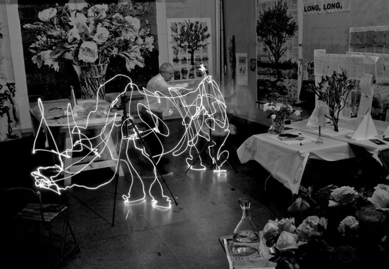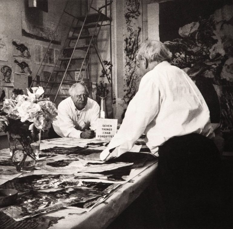 Una forma de interpretar la obra del artista es la foto que hago para el post. En este caso lo que quiero contar en esta foto es el desdoblamiento del artista durante el proceso creativo, las conversaciones que un creador tiene consigo mismo. En la foto original que me sirve de inspiración, Kentridge se enfrenta a sí mismo, y entre un yo y el otro yo tiene un cartel: siete cosas que he olvidado. Parece que, a veces, para poder recordar lo que ya creó en su cabeza, Kentridge tiene que bucear en su cerebro para encontrar las ideas rumiadas en sus sueños o en un paseo durante el cual no anotó la ideas para su próxima obra.