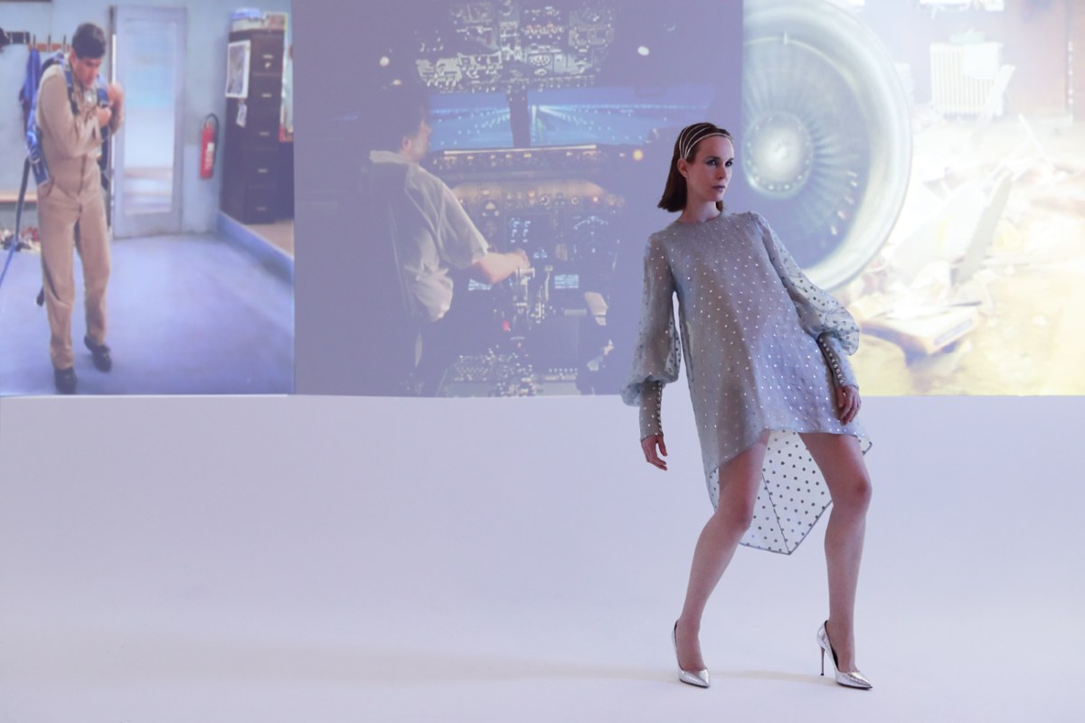 Foto principal y foto 2: vestido gris azulado de Hannibal Laguna; zapatos plateados de Pura López, cortesía de Finally