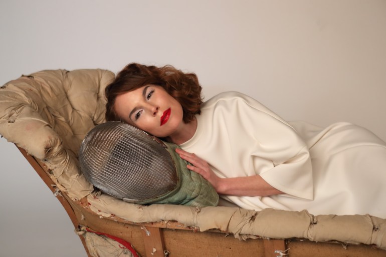 Foto 3: máscara de esgrima de Alfredo Velasco; vestido de Balenciaga