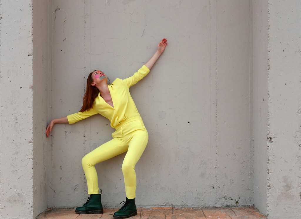 Foto 5: mono amarillo de Bash y botas verdes Doctor Martens cortesía de Globally.