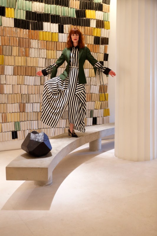 “Muro de viento” es un espacio inspirado en las formas orgánicas de la naturaleza. Pertenece a la colección Loewe y se puede visitar en su espacio en la calle Serrano de Madrid. “Wind Wall” parece querer registrar el paso del viento jugueteando en su recorrido a través del zigzag de sus piezas. De alguna manera, se puede escuchar cómo sopla ese viento solo con observar el serpenteo de arcilla en el muro intervenido. Verde, ocre, tierra, blanca, negra…, la arcilla se convierte en movimiento.Y la materia tangible se vuelve intangible. La materia, la sílice, los óxidos férricos, la cal…, se hacen recipientes que contienen el aire. La artista consigue que, observando su pieza, uno se sienta mecido por el viento.