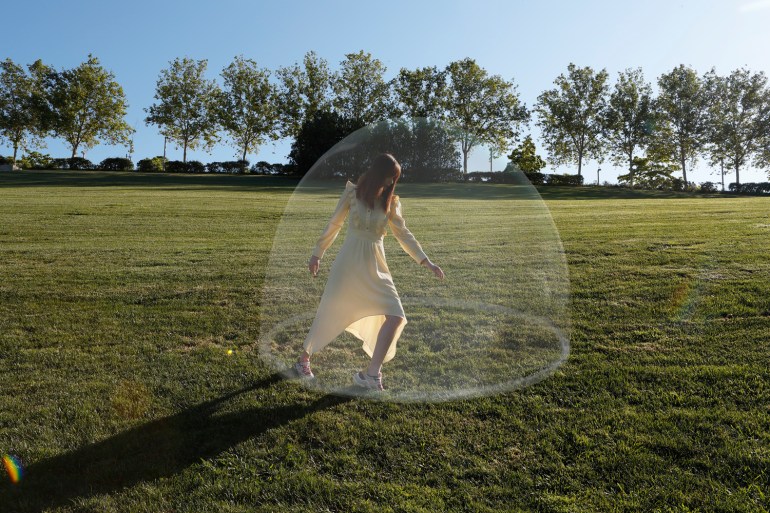 Pie de foto. Ojalá estos círculos fueran círculos mágicos que simbolizaran lo absoluto, lo infinito contenido en la perfección de la armonía; círculos no cerrados como el Enso japonés, o los círculos que dibujaba Jung para hallar la calma, el impulso para ir más allá. Pero son los círculos en los que nos encerramos en espacios abiertos para crear una “distancia de seguridad” ante un virus que circula a sus anchas. Círculos que marcan límites, círculos que representan separación, una protección deseada. Ojalá fueran círculos de auto-curación y pudiéramos abrirlos… Acaso para ir más allá desde aquí.