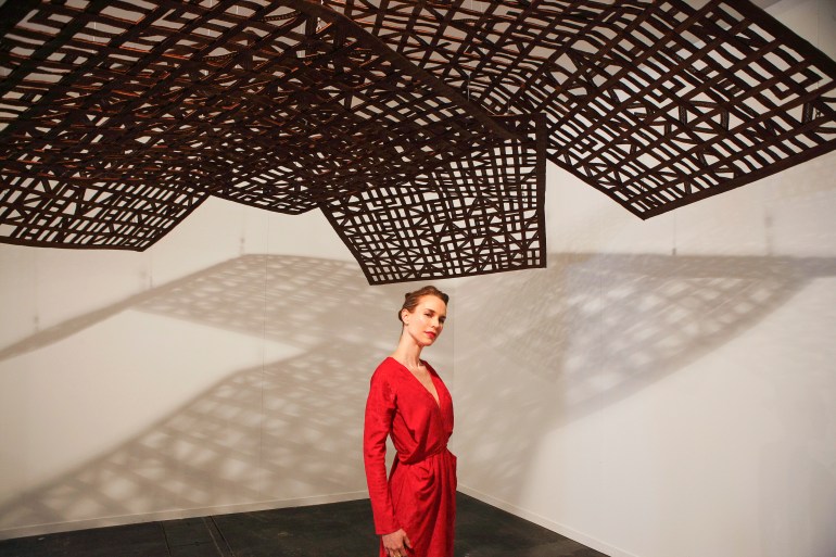 Cristina Iglesias (in ARCO with Elba Benítez’s gallery) is a woman, an artist, and Spanish. Her work is indeed valued, she’s a consolidated sculptor. Her works invites me to other worlds; worlds that are secret, subtle, sensorial; worlds that are inaccessible, labyrinthine, mysterious. The textures, materials, color, and shadows of her work have a language that I understand and in which I like to be. I say “to be” because her sculptures are habitable; they wrap you up, they shelter you.