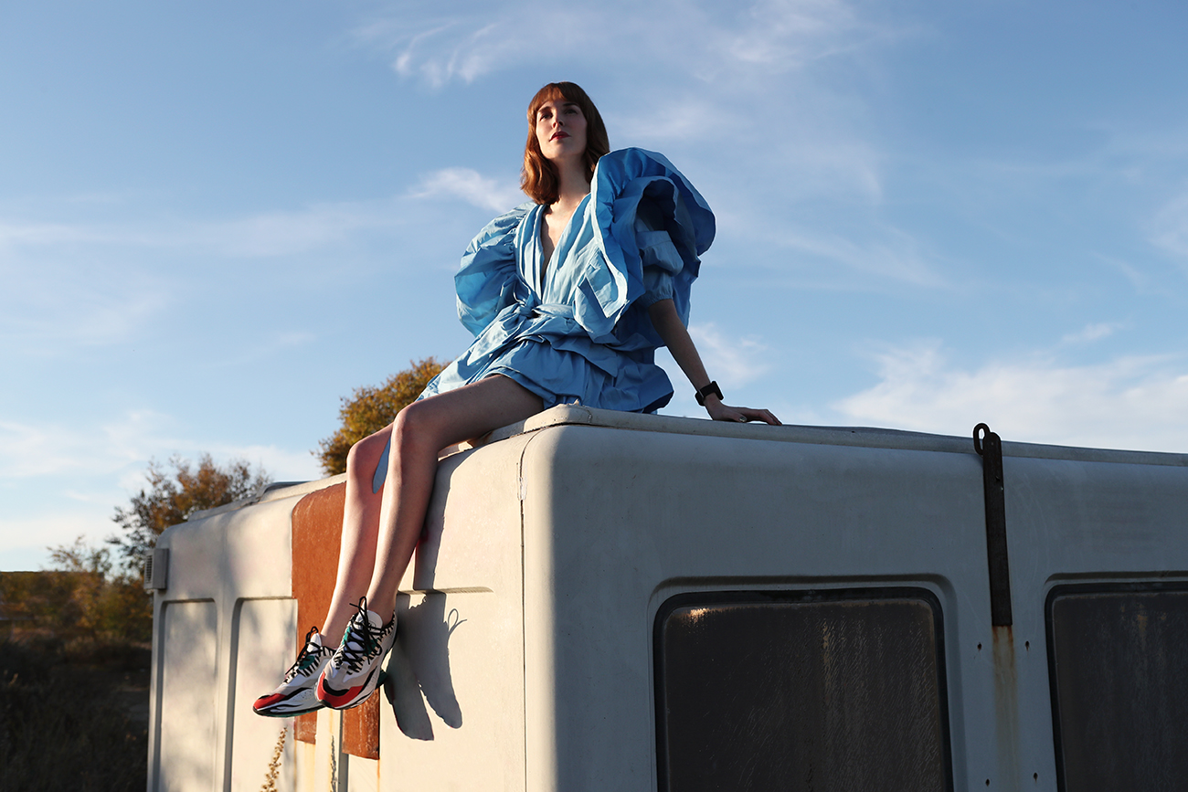 Photo 3: orange bow top by Blas Moreno. Glitter sneakers by Diadorita, courtesy of Globally