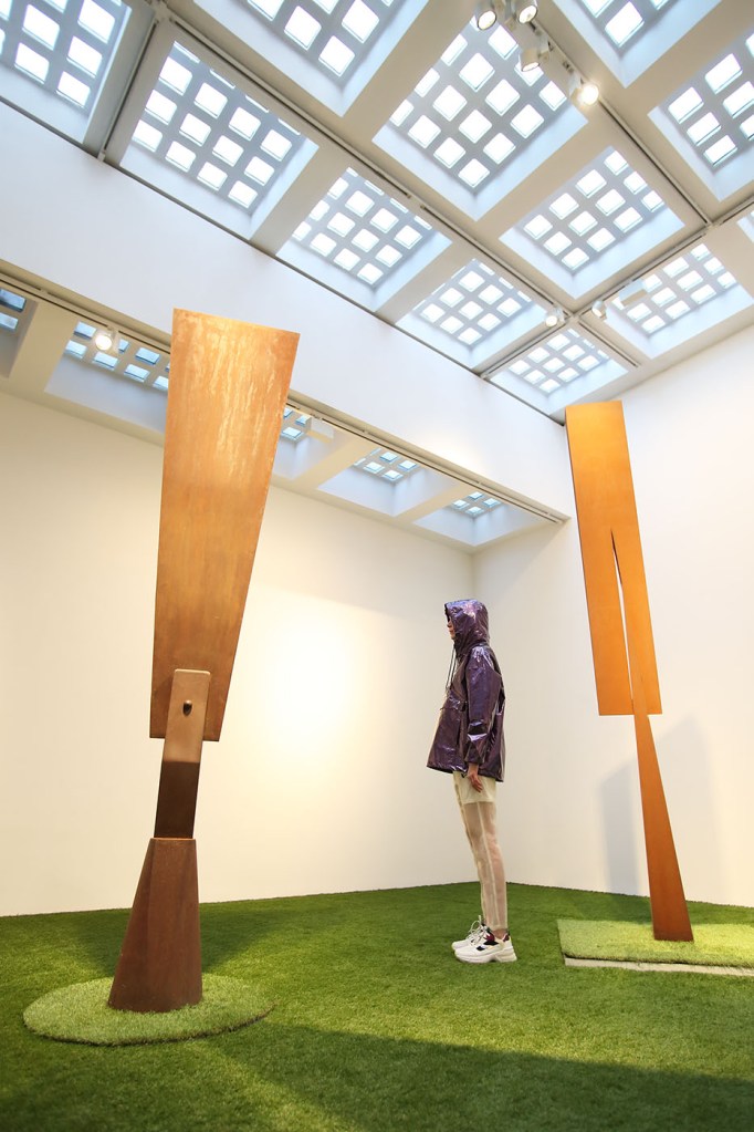 Iron, bronze and steel seem to be the preferred materials of these seven artists. Like alchemists, they mould and shape these apparently cold ingredients into expressive works which transmit ideas, share stories and awaken emotions through their forms and textures. The green underfoot seems to make the ceiling disappear; we feel like we’re in a park, urged to take off our shoes, sit down or relax alongside the works to observe them calmly. We’re transported to another place, invited to imagine urban spaces inhabited by these sculptures.