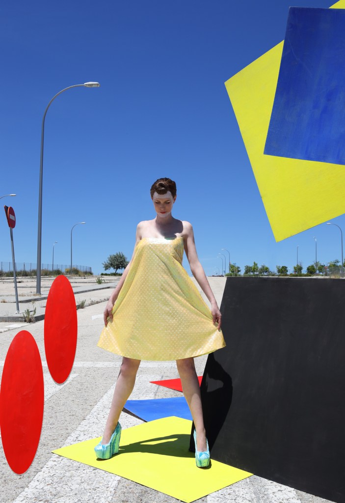 Main picture: blue dress with pink sleeves and red high heels by Ágatha Ruiz de la Prada